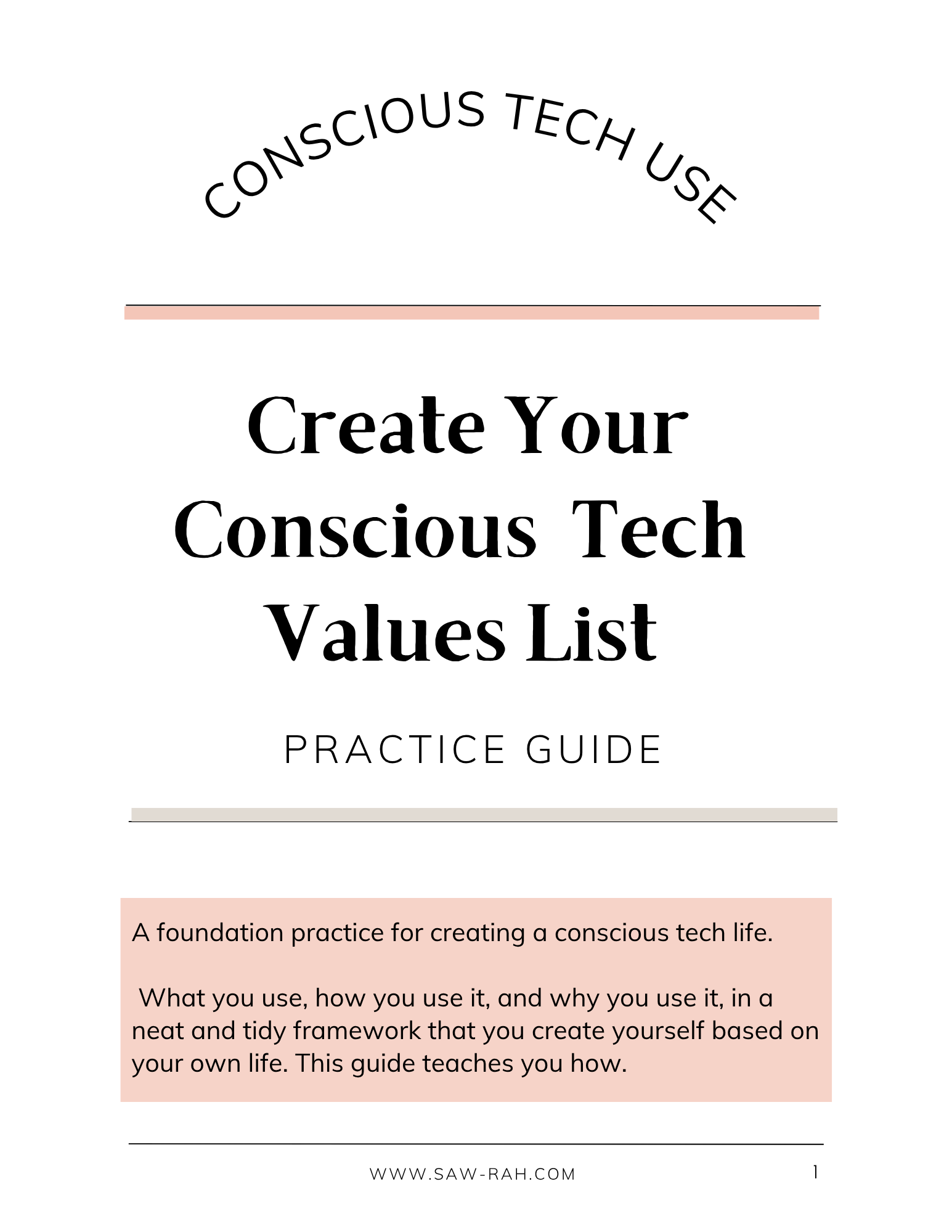 This guide walks you through one of the foundation practices of a conscious tech life, your conscious tech values. This PDF teaches you how to create your value framework for yourself based on your life.